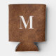 Faux brown leather can or bottle cooler for him on his camping trips.
