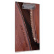 This sophisticated My Thoughts Unzipped brown faux Leather and satin notebook is a fun twist on faux leather. This rich brown clipboard design, inspired by brown leather and an unzipped brass zipper, has the look of fine leather including piping and stitching for a sophisticated look and an executive style. Personalise this clipboard witha Name like embossed leather.