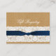 burlap lace, navy blue ribbon knot rustic wedding wedding gift registry cards. Matching products also available.