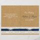 burlap lace, navy blue ribbon knot , bookfold rustic Wedding program, you will have to manually fold these programs. click "clear" on you right if you want to remove folding lines on front and back these folding lines are given to guide you that none of your text runs into other side. Matching products also available.
