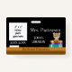 A cute horizontal photo ID badge for elementary school librarians . It features a faux chalkboard background , a white chalk , 3 books and a cute little bear peeking over them . Personalise it with the employee 2 inch face photograph , the name and title of the card holder , the name of the school , and the school year the badge is valid for . On the back add your school name and address . There is a white rectangle provided for a signature or for a bar code sticker .