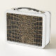 Faux Crocodile Black Liquid Marble and gold Metal Lunch Box