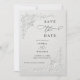Elegant faux embossed floral save the date invitation with faux cotton paper texture (printed design) and refined botanical details, perfect for a timeless and luxurious wedding announcement.