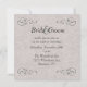 This elegant but fun wedding invitation with flourishes at the corners and an embossed-look motorcycle at the centre against a faux parchment background is perfectly suited for a biker couple. From my original digitally-created image.