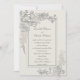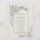 A stunning floral frame with peonies as the centre pieces, with filler wedding flowers and foliage such as eucalyptus, stock flowers, ferns, veronica flowers and more, hand-drawn in ink and layered with a faux-embossed effect, decorates this elegant and sophisticated formal wedding invitation template that features elegant calligraphy and a double rectangular frame with the same faux-embossed effect. This art wedding invitation is a lovely choice for couples who love fine art, art designs, unique and original art and formal, traditional wedding designs. Customise each line of text. Matching items available.