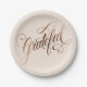 Faux-foil Elegant Grateful Script for Thanksgiving Paper Plate