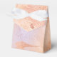 Artistic watercolor paint effect favour box in accents of rose gold and serenity.