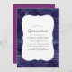 Brightly coloured navy blue and purple patterned quinceanera invite designed to be quickly and easily customised to your event specifics.