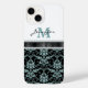 Faux Glitter Aqua Damask Monogram Case-Mate iPhone Case