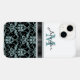Add a little bling to her life with this exquisite phone case featuring a pretty aqua teal and black damask pattern on the bottom of the case, and her monogram and name in matching teal and black on the top. The two sections are separated by a black faux ribbon bordered with glittery faux diamond edging that gives special sparkle to the case! *Please note that the image is printed, and contains no actual ribbon, glitter, or gems.