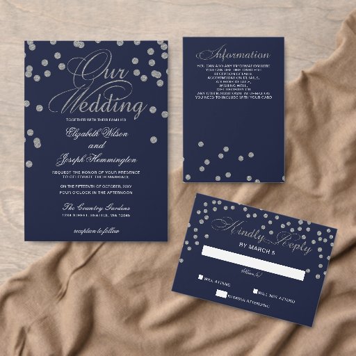 INVITATION SUITE: NAVY SILVER GLITTER CONFETTI Designed by Maria G