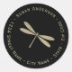 This circular address label is decorated with elegant faux glitter dragonfly vector image. The circular design makes it perfect as an envelope seal.