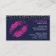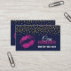 © 2018 Socialite Designs. Sassy makeup artist business cards that include hot pink faux glitter lips and gold-foil-look confetti. Stand out in the crowd with this fun MUA profile card.