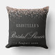 Add a touch of glamour to your celebration with this stunning faux glitter pink and black bridal shower throw pillow. Designed with sparkling glitter-style accents and elegant script typography, this personalized cushion makes a beautiful keepsake for the bride-to-be.