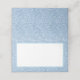 This folded name place card is shown in a lovely light blue colour faux glitter border print.
