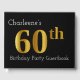This birthday party guestbook design features a personalised name and the number "60th" coloured with a faux gold pattern.