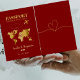 Invite your loved ones on the adventure of a lifetime with this faux gold heart flag passport wedding invitation. Designed with a chic travel theme, this invitation is perfect for couples planning a destination wedding. The elegant gold heart detail paired with a stylish passport-inspired layout sets the tone for a romantic journey across the globe.