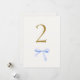 Chic and lovely. This wedding table number features a faux gold contemporary font and dusty blue watercolor ribbon detail, against an off white background. The front design is repeated at the back for easy view from all angles at the table.