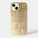 Faux Gold Brushed Metal Glitter Monogram Name iPhone Case