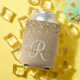 Faux Gold Brushed Metal Glitter Print Monogram Nam Can Cooler