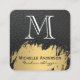 Faux Gold Brushed Monogram Leather Square Business Card
