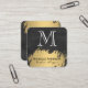 Faux Gold Brushed Monogram Lush Black Square Business Card