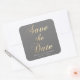 Grey background with faux gold calligraphy custom script "save the date" and your own monograms in elegant font. This sticker pairs beautifully with our cards and envelopes.