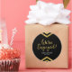 This round sticker features an elegant geometric chevron and the word "We're Engaged" in faux gold against a black background. It's great for an engagement celebration. Check out matching invitations and items here http://www.zazzle.com/collections/modern_faux_gold_chevron_celebration_collection-119531050277382712?rf=238364477188679314