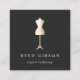 Elegant business cards for seamstresses, fashion designers, and tailors in a unique square format feature a dress form in faux gold foil, on a rich charcoal grey background with two lines of custom text in white. Customise the back with your full contact details.