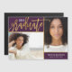 Affordable custom printed graduation announcement magnets personalised with your photos and text. This elegant modern design features a modern script font with faux gold foil effect. Add 2 senior photos along with your grad year, name and school details or any other custom text. Use the design tools to choose any background colour, add more photos or edit the text fonts and colours. This chic design is perfect for middle school, high school or college grads!
