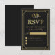Chic faux gold foil art deco wedding RSVP cards. The elegant wedding RSVP cards feature a faux gold art deco border, dark grey background, and wedding monogram. Change the font style by clicking the "Customise It" button.