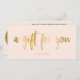 Modern chic faux gold gradient metallic foil logo gift certificate on pastel blush pink. Get ready for the shopping season and Christmas. Perfect gift for anyone! Add your logo