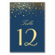 Faux Gold Foil Confetti Dots Navy Blue Table Number