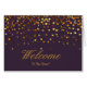 Welcome your new employees to your team and make them feel appreciated with this cheerful and stylish Glitter Faux Golden Foil Confetti Sparkles Dots with purple background pattern business employee welcome greeting card. This welcome card for new employees or clients in the company. Text and design can be customised for any invitation card.