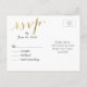 Faux Gold Foil Glamour with Heart | Wedding RSVP Postcard. Elke Clarke © Other colours available at www.zazzle.com/monogramgallery. A simple, yet versatile, handwritten script gold rsvp for weddings or other special occasions such as rehearsal dinners, couple's showers, wedding anniversary celebrations. Gold foil is a printed photo effect.