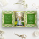 Faux Gold Foil Green Damask Wedding Photo Tri-Fold Invitation