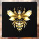 Gold, jewellery, polygonal bee with golden sparkling wings on black background. Polygonal style animal.Golden bee.