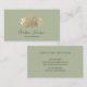 faux gold foil lotus logo on sage green business card