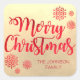 Faux Gold foil Merry Christmas Red Snowflakes Square Sticker