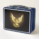 Faux Gold Foil Peace Dove on Black Metal Lunch Box