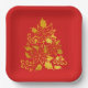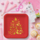 Faux Gold Foil Poinsettias Christmas Trees Paper Plate