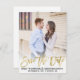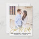 Send our portrait picture save the date cards with a modern brush script to let your guests know to block off your wedding date. You can choose from one of the available predesigned colour schemes, or you can select one of the flat coloured designs (with black text, for example) and then be able to change the colours to whatever custom colour you would like. Just click on the "Edit Design" button, click on the text you would like changed, and then add your custom colours. The background colour is customisable as well so that you can change your cards to exactly what you're wanting. Be sure to check out our large selection of photo save the date cards, postcards, and magnets by browsing our Picture Save the Date collection!