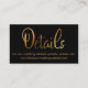 Keep your wedding guests in the loop with all your details with these pretty wedding favour insert cards. Elegant text overlays were designed using a modern, casual script font embellished with a smooth faux gold foil effect. In this font, one side reads "Save the Date" and the other, simply says "Details". Use the template fields to customise with your personal information. The background is covered in black and this editable colour can be changed to anything from your wedding palette that you choose; all editable text appears in a complementary golden hue. // 102 //