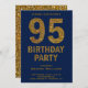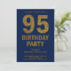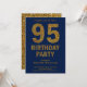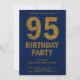 Amaze your guests with this glamourous 95th birthday party invitation featuring a bold golden glitter text against a blue background. Simply add your event details on this easy-to-use template to make it a one-of-a-kind invitation. Flip the card over to reveal a faux gold glitter texture on the back of the card.