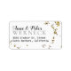 Your address personalised in a easy way... in a white label with two lines of text aligned by the left, and with bride and groom names and family surname written in elegant font styles with falling confetti... for stylish wedding mailings