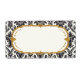 NOTE: This is a flat printed design. There is no actual glitter, gold metal or raised layers. COLOR PALETTE: glittery, shimmery black, gold and soft white. DESIGN COLLECTION: Matching Business Cards, Card holders, and additional stationery items to match are perfect for personal use or professionals and businesses. Graphic design by Audrey Jeanne Roberts, this modern yet vintage style damask patterned image with a decorative floral design has a trendy faux glitter look. The frame is a scroll and dot pattern with an art nouveau or art deco influence. The damasks stylistically rendered flower elements are laid over a creamy white background colour. A bracket style frame has polka dots and a calligraphy swirl type border. There is a wide range of colour combinations available with this pattern.