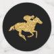 Faux Gold Glitter Derby Race Horse on Black Confetti