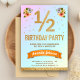 Faux Gold Glitter Floral Half Birthday Party Invitation