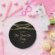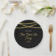 This New Year Eve Party paper plate features a black background accented with faux gold glitter strings. Custom script text allows you to personalise with your name.