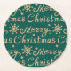 Faux Gold & Green Merry Christmas Lettering Round Paper Coaster